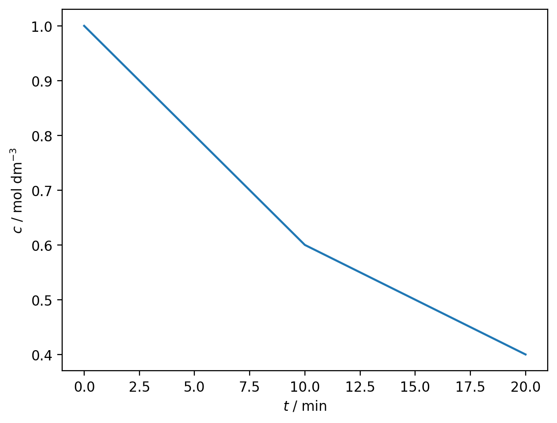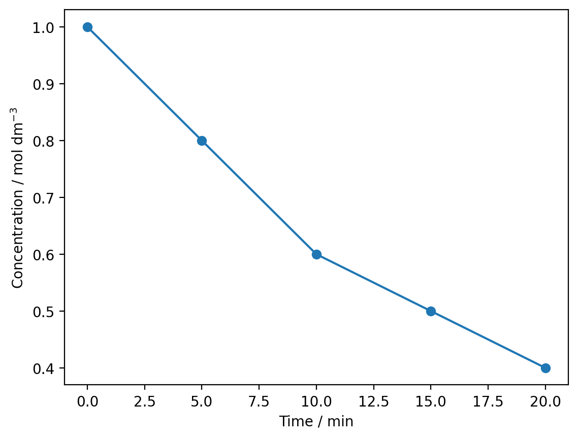 plt.ylabel('Concentration / mol dm$^{-3}$')