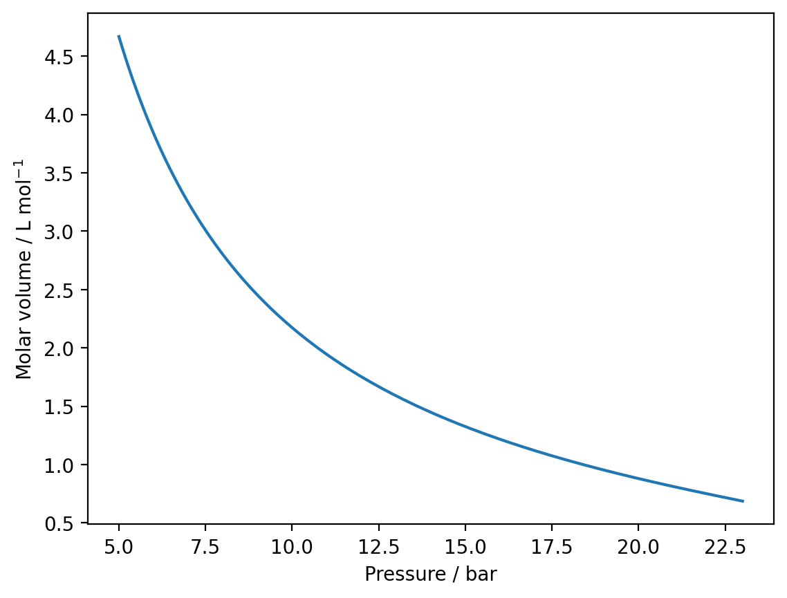 plt.xlabel('Pressure / bar')