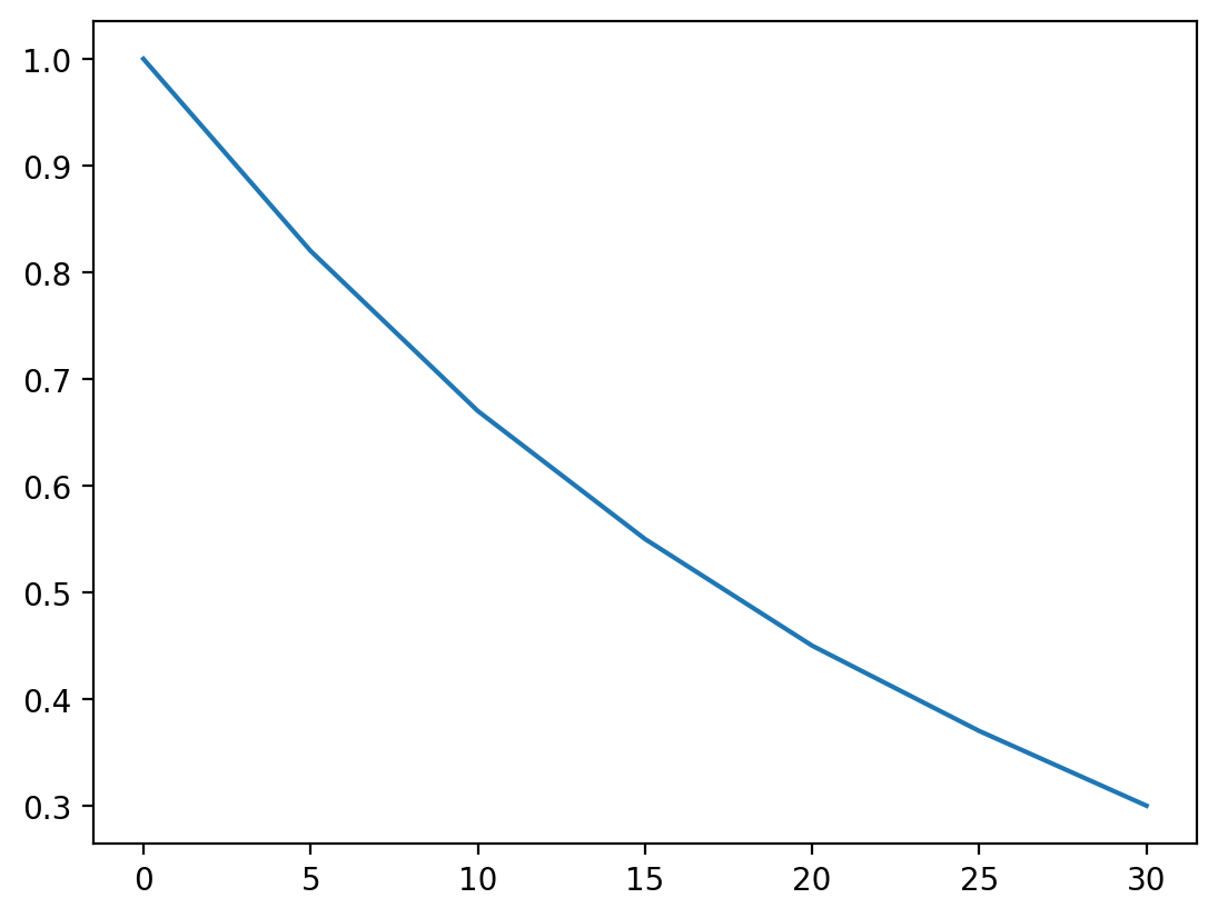 time = np.array([0, 5, 10, 15, 20, 25, 30])