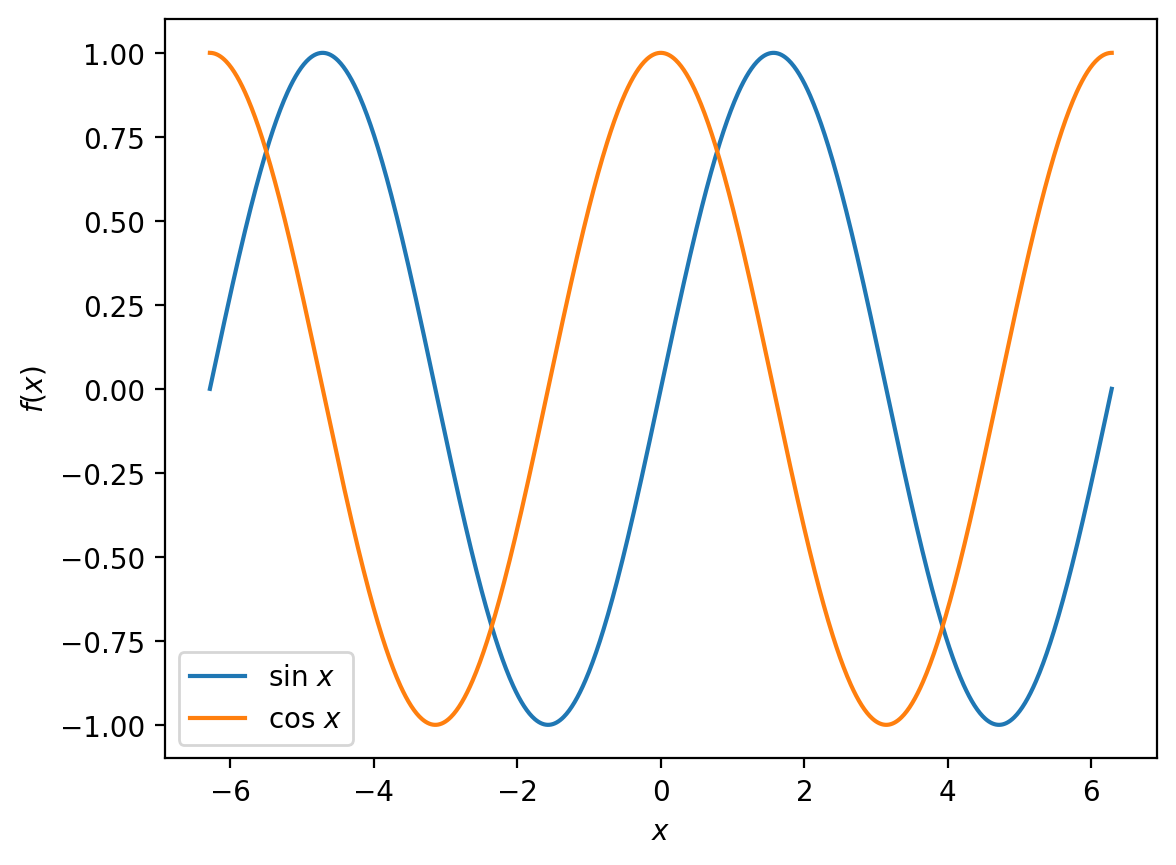 In this example we just use standard strings for the data label and for the \(x\) and \(y\) axes labels.