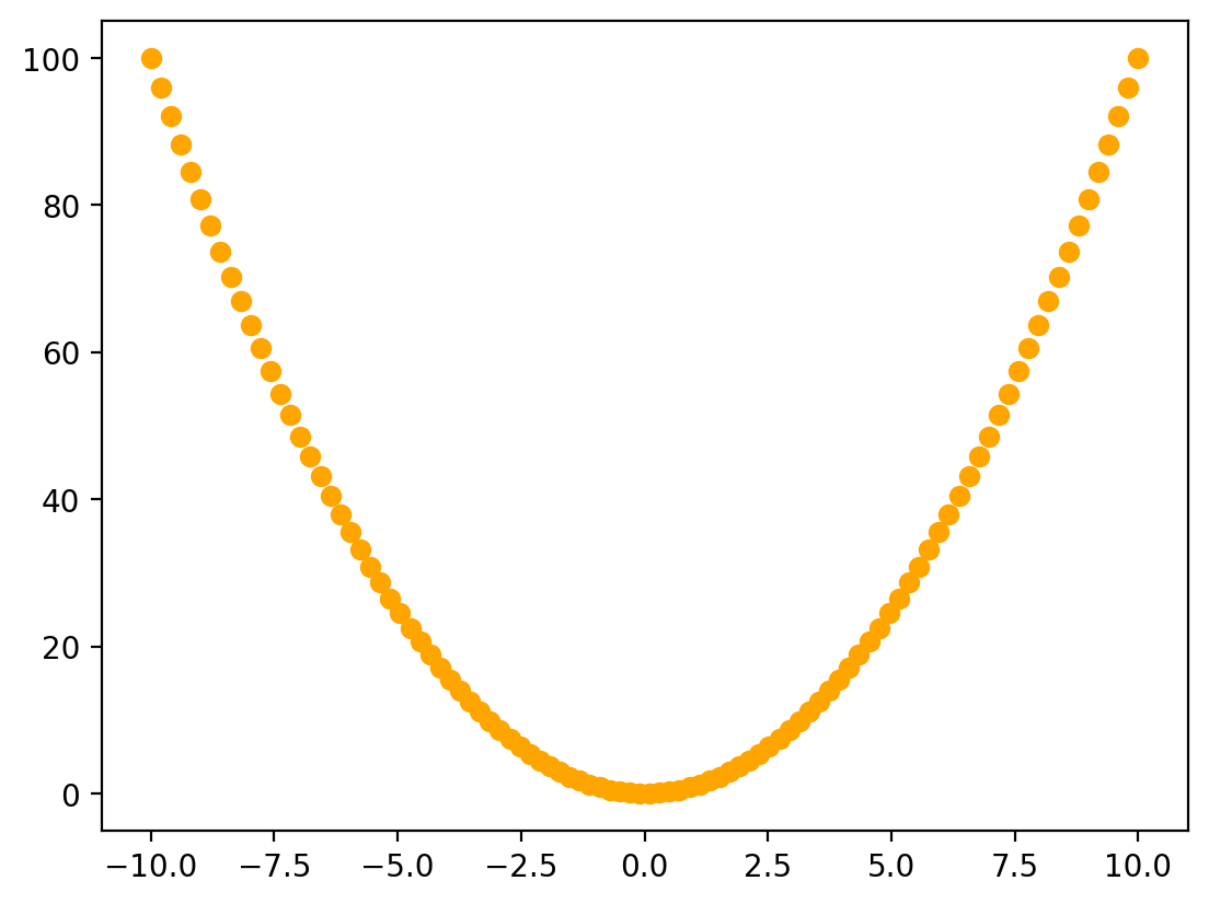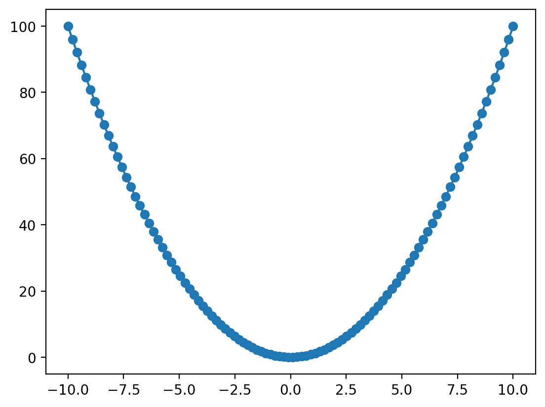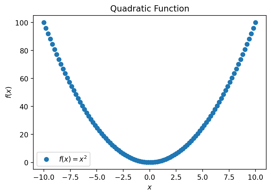 plt.plot(x, f_x, 'o', label='$f(x) = x^2$')