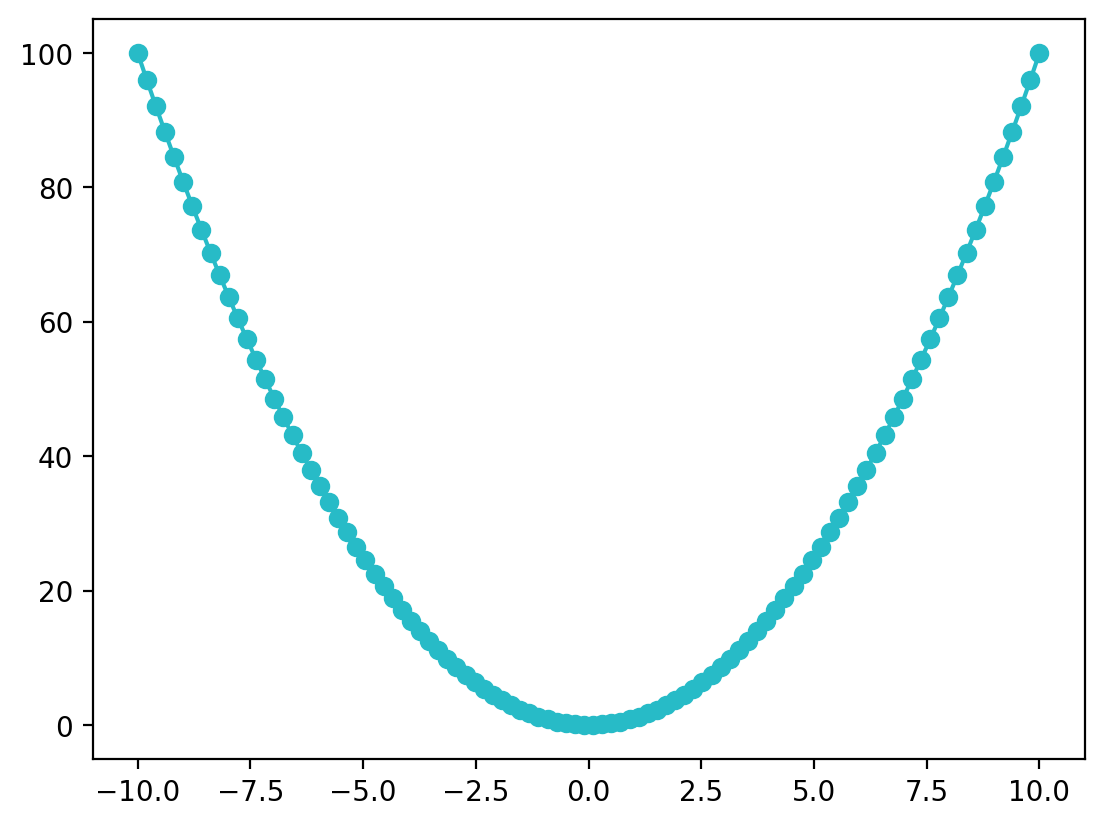 plt.plot(x, f_x, 'o-', color=(0.153, 0.733, 0.780)) # red = 0.153, blue = 0.733, green = 0.78