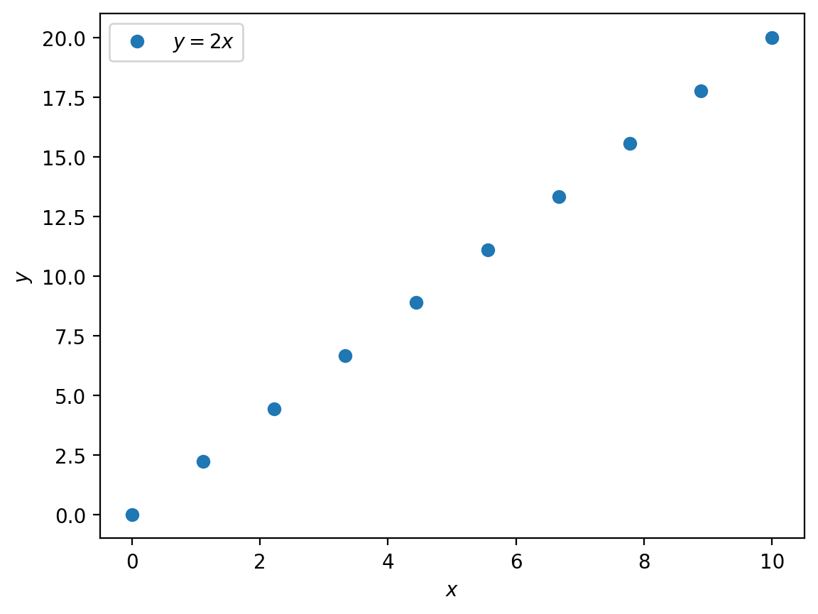 plt.plot(x, y, 'o', label='$y = 2x$')