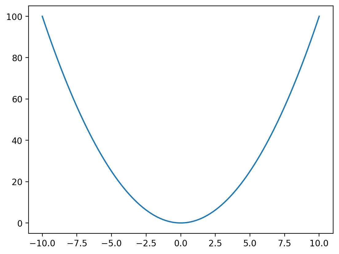 function to generate a set of 100 evenly-spaced points between -10 and 10, which we store in the variable x